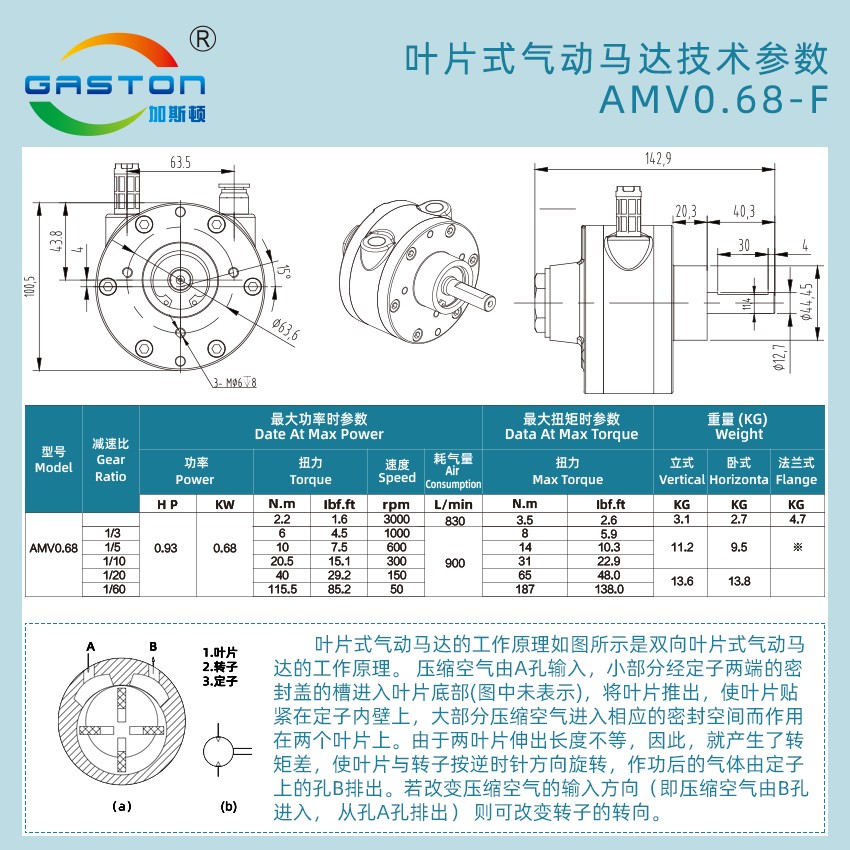 產品名稱:葉片式氣動馬達 AMV0.68