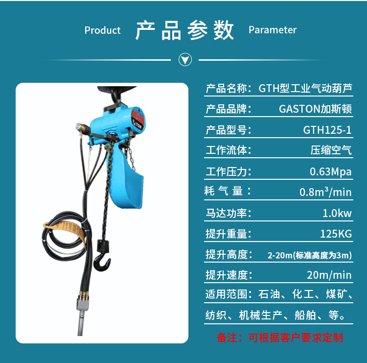 產品名稱:工業型氣動葫蘆GTH系列